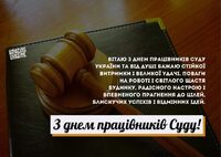 Шановні судді та працівники судових установ! Прийміть щирі вітання з нагоди професійного свята – Дня працівників суду! Бажаємо мудрих рішень, професійних звершень, процвітання та бездоганної репутації, а також витримки та сили духу на шляху до Перемоги та Миру! Слава Україні!