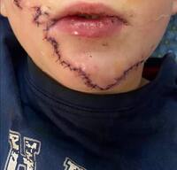 Травма: глибоке ушкодження м’яких тканин обличчя із залученням слизової оболонки, м’язів та шкіри.