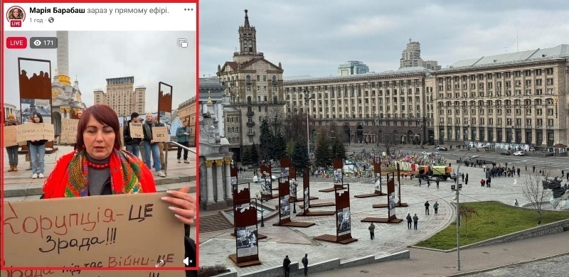 Ліворуч — Майдан сьогодні, праворуч — Олег Царьов поширює звернення Барабаш