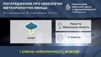 У середу, 17 вересня, очікується мінлива хмарність. Вночі буде помірний, а вдень невеликий короткочасний дощ з можливими грозами. Вночі та вранці місцями можливий слабкий туман. Вітер західний, 7–12 м/с.