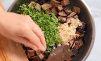 Подача. Перед подачею полийте страву олією, додайте свіжу зелень і, за бажанням, подрібнені волоські горіхи.