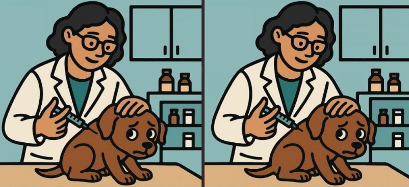 Уважно подивіться на два зображення, на яких ветеринар робить укол собаці. Картинки здаються однаковими, але між ними сховані три невеликі відмінності.