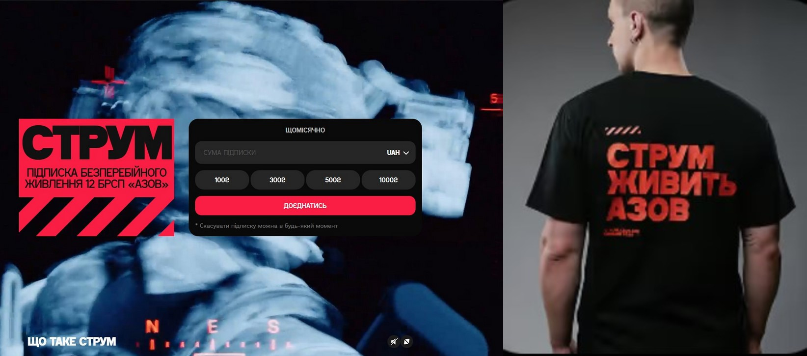 «СТРУМ» – це підписка на щомісячний донат. Завдяки їй 12-та бригада «Азов» вчасно закриває термінові запити.