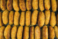 Далі необхідно сформувати вироби, збити яйце, обваляти їх у ньому, а потім у панірувальних сухарях. Деко підготуємо, застеливши його та змастивши олією. Викладаємо котлети на деко.