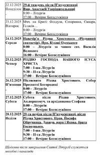 Графік служб у Свято-Воскресенському кафедральному соборі