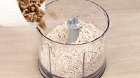 Подрібніть у блендері вівсянку та, горіхи, і додайте какао та ванілін.